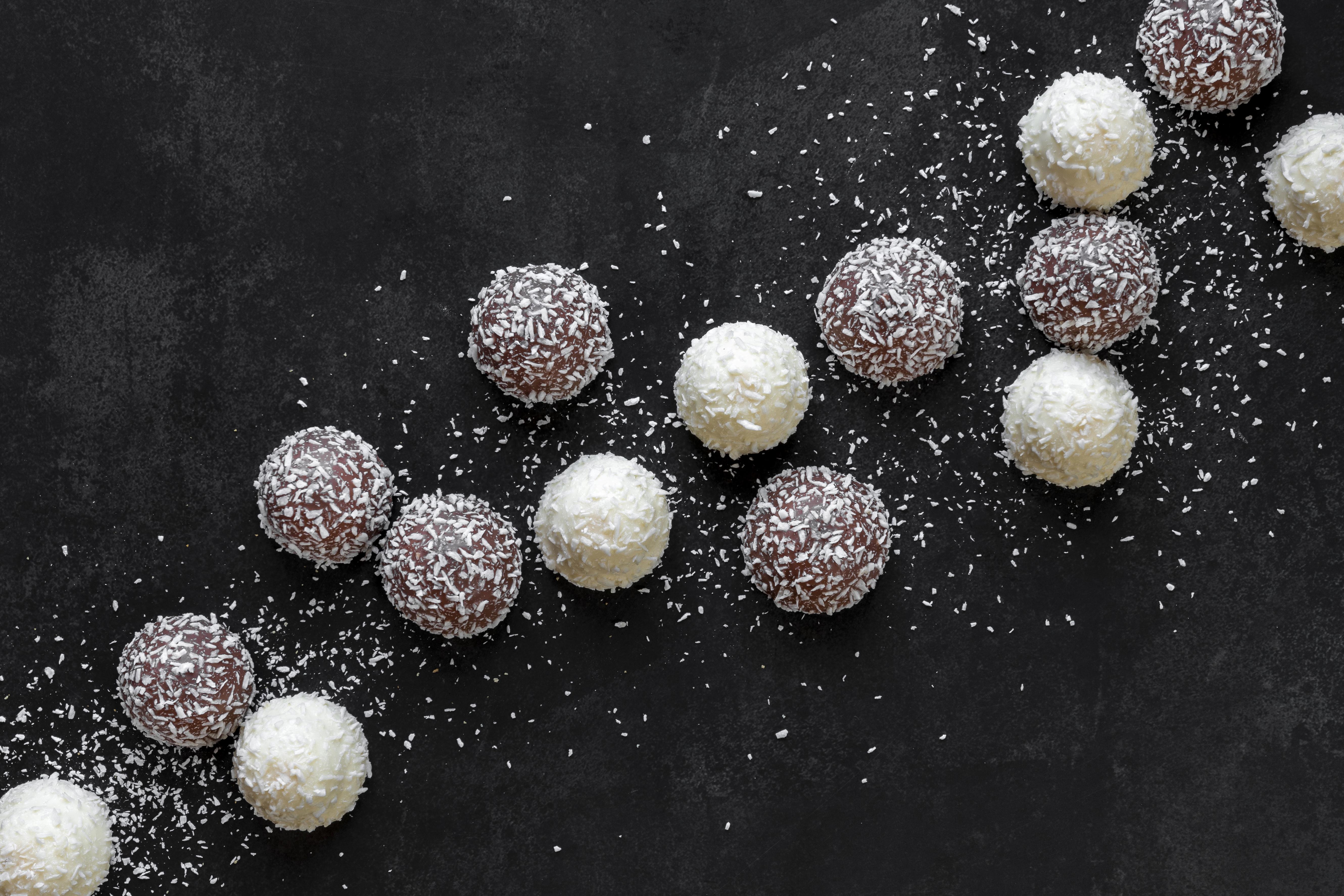 Den Teig zu kleinen, gleich großen Bällchen rollen und anschließend in den Kokosflocken wälzen.
