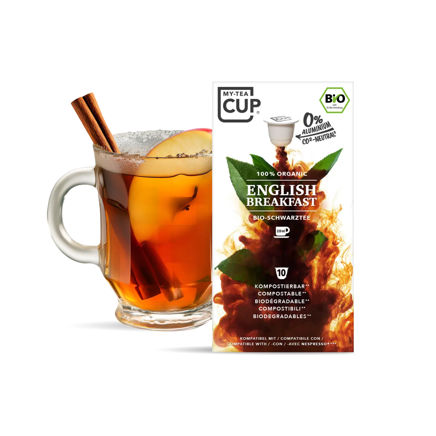 - Bio English Breakfast Tee mit der Teekapselmaschine aufbrühen.